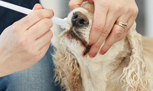 Deposite una pequeña cantidad de pasta C.E.T.® sobre el dedal o sobre el cepillo que la acompañan y humedézcala con agua limpia, incentivando al animal a probarla.